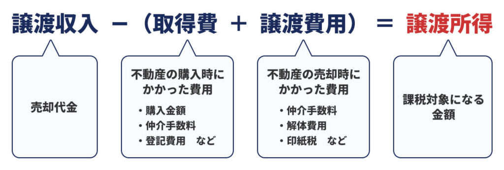 譲渡所得は、売却価格から取得費と譲渡費用を差し引いて算出されます。